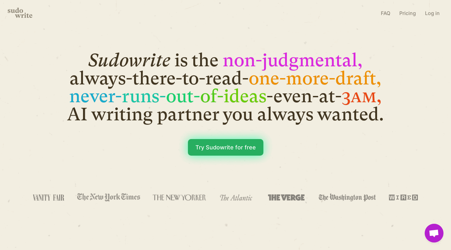 קבל עזרה עם חסם כתיבה באמצעות הכתיבה הקסומה של Sudowriter AI.